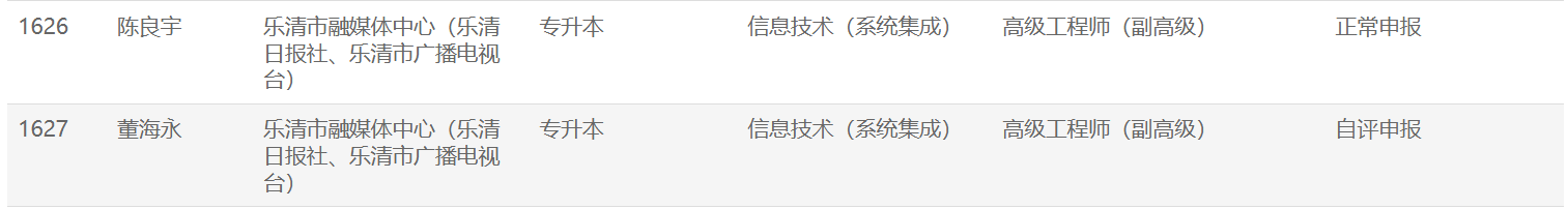 经2024年度省信息技术高级工程师职务任职资格评审委员会评审,乐清市融媒体中心共2人具有高级工程师职务任职资格(名单详见附件),现予公示。